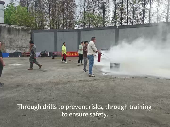 Prevenir mediante simulacros, mejorar la seguridad mediante la práctica" - Nuestra empresa lleva a cabo simulacros de emergencia contra incendios para fortalecer la línea de defensa de producción de seguridad. En la sesión práctica de operación, el oficial de seguridad demostró el funcionamiento estándar del extintor: "levantar, tirar, sostener, presionar" en el sitio. Los empleados practicaron uno por uno y dominaron las habilidades para extinguir los incendios iniciales.